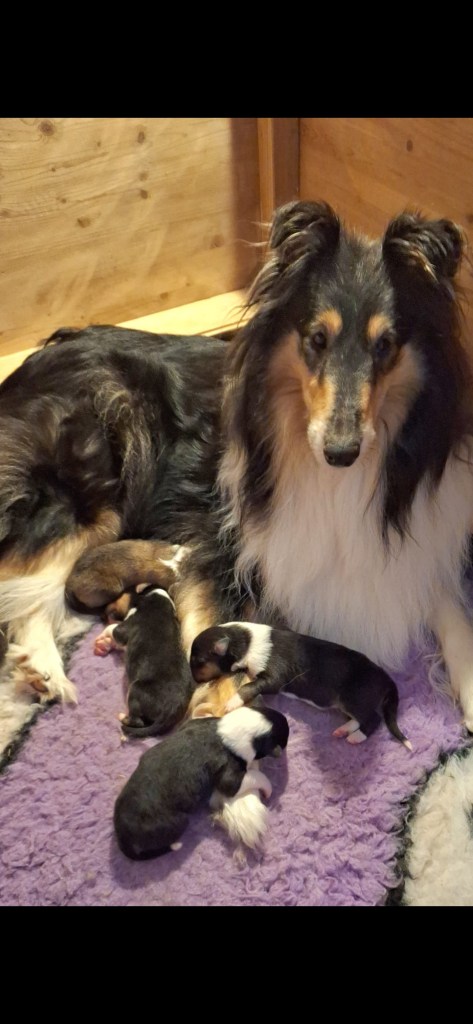 Rösli ( Bed of Roses vom Hause Rukopf) mit ihren Welpen